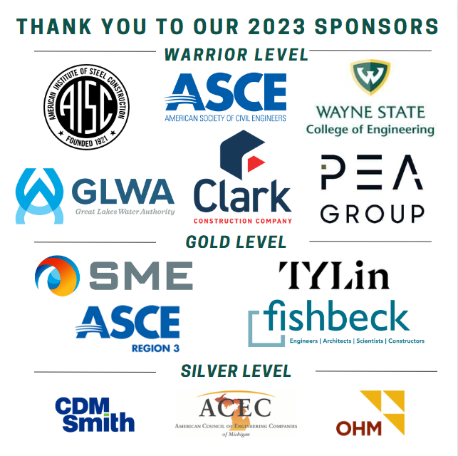 Thank you to the sponsors of the 2023 ASCE Eastern Great Lakes Student Symposium!
