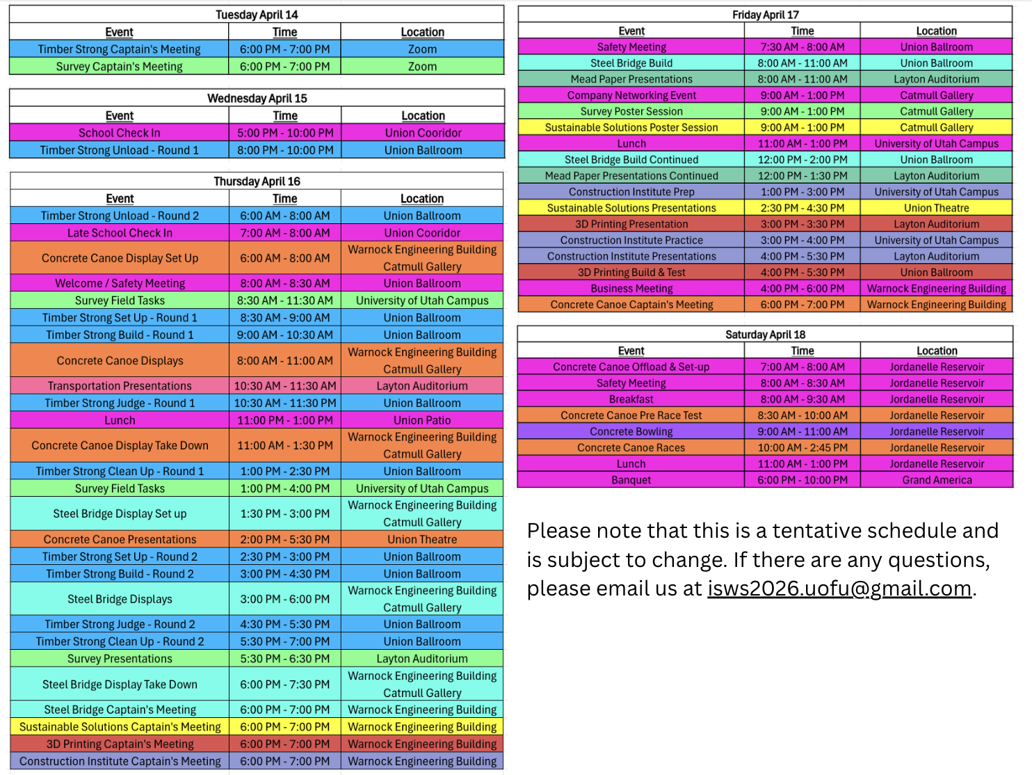 Tentative Symposium Schedule